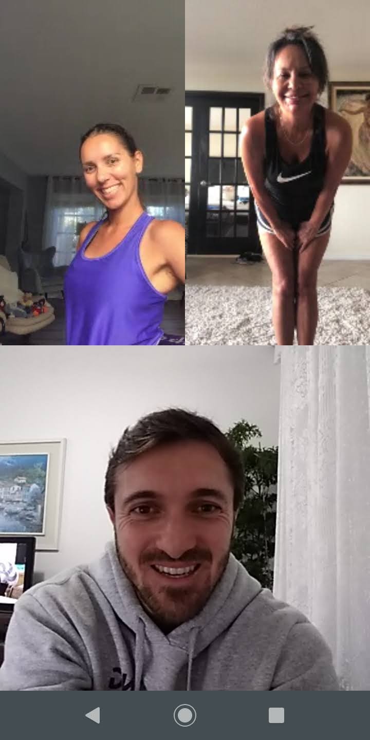 Treino realizado em dupla (Alunas da Flórida EUA), Chamada de vídeo através do Whatsapp, cada um na sua casa.