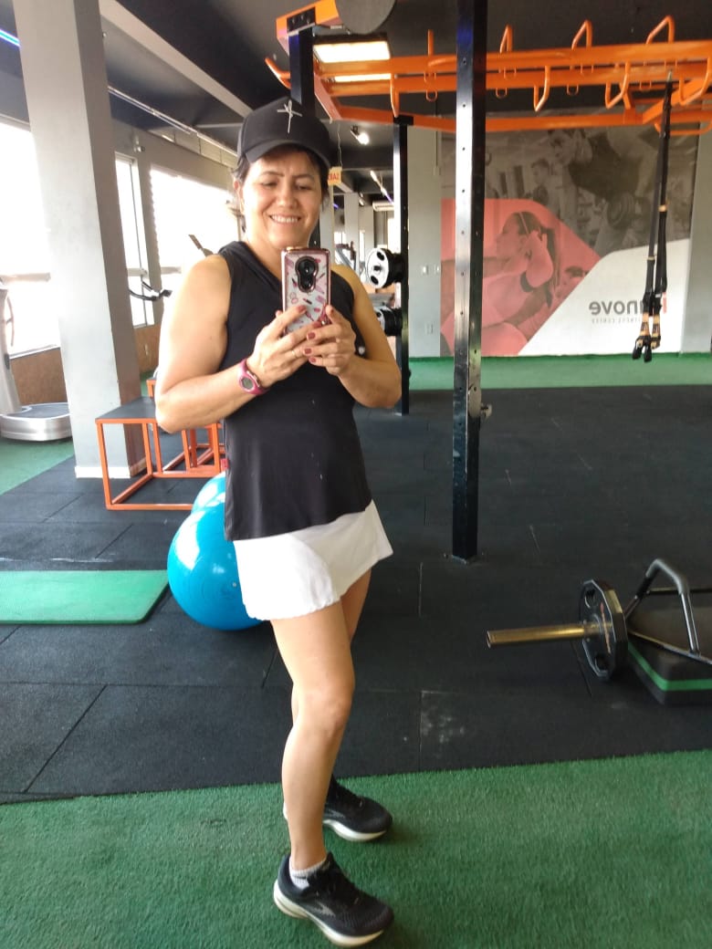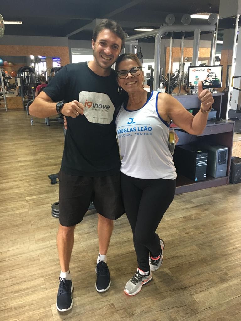 Há muitos anos sofria com dores generalizadas em todo corpo, problemas de coluna, sempre começando academia e tendo que parar por causa dessas dores. Dizem os médicos que eu tenho fibromialgia, sou muito resistente, não aceito, embora tome algum medicamentos, nunca abandonei exercícios físicos. Já fiz todo tipo de atividades, Yoga, Pilates, mas sempre fui muito apaixonada por musculação, e na academia conheci o nosso professor, hoje nosso personal Douglas Leão, que tem um jeito muito doce de chegar e de ensinar, mesmo sem cobrar nada, digamos assim, me ajudou muito na academia mesmo não sendo meu personal.